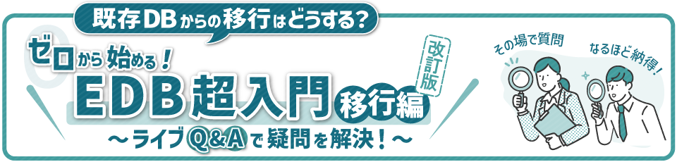 好評のオンデマンド動画をベースに、一部最新情報にアップデートした新たな「EDB超入門:移行編」をお届けします。