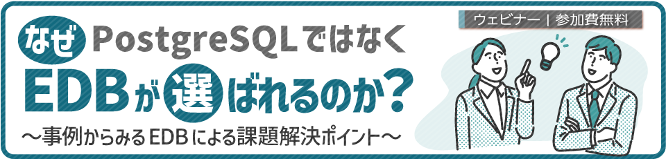 PostgreSQLの企業利用は年々増加しており、ある調査では企業の約6割がPostgreSQLを利用したことがあると回答しています。しかし、その利用には保守や運用メンテナンスなどの課題を抱える企業も多いのが現状です。本ウェビナーでは、実際にEDBを採用した企業がどのように自社課題を解決したのか、具体的な事例を通じてご紹介します。EDBの導入によるメリットを詳しく知る絶好の機会です。ぜひご参加ください。
